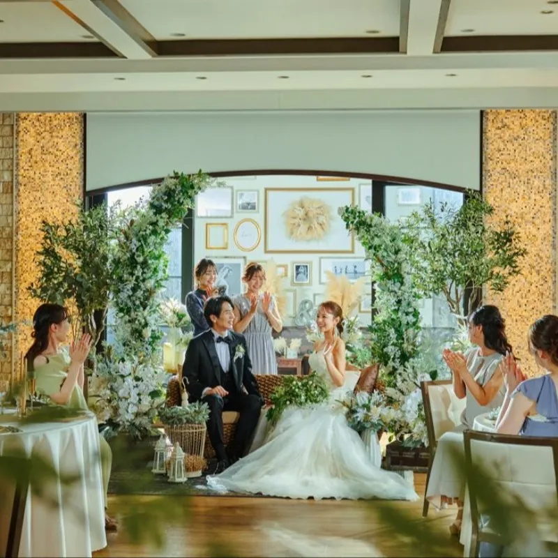 人気の木漏れ日チャペル、300インチの巨大スクリーン、階段が印象的なパーティ会場と、特別な1日を彩るスケール感のある空間が人気の秘密!新しい時代の考え方と、ふたりの理想を融合させて作る結婚式を実現。